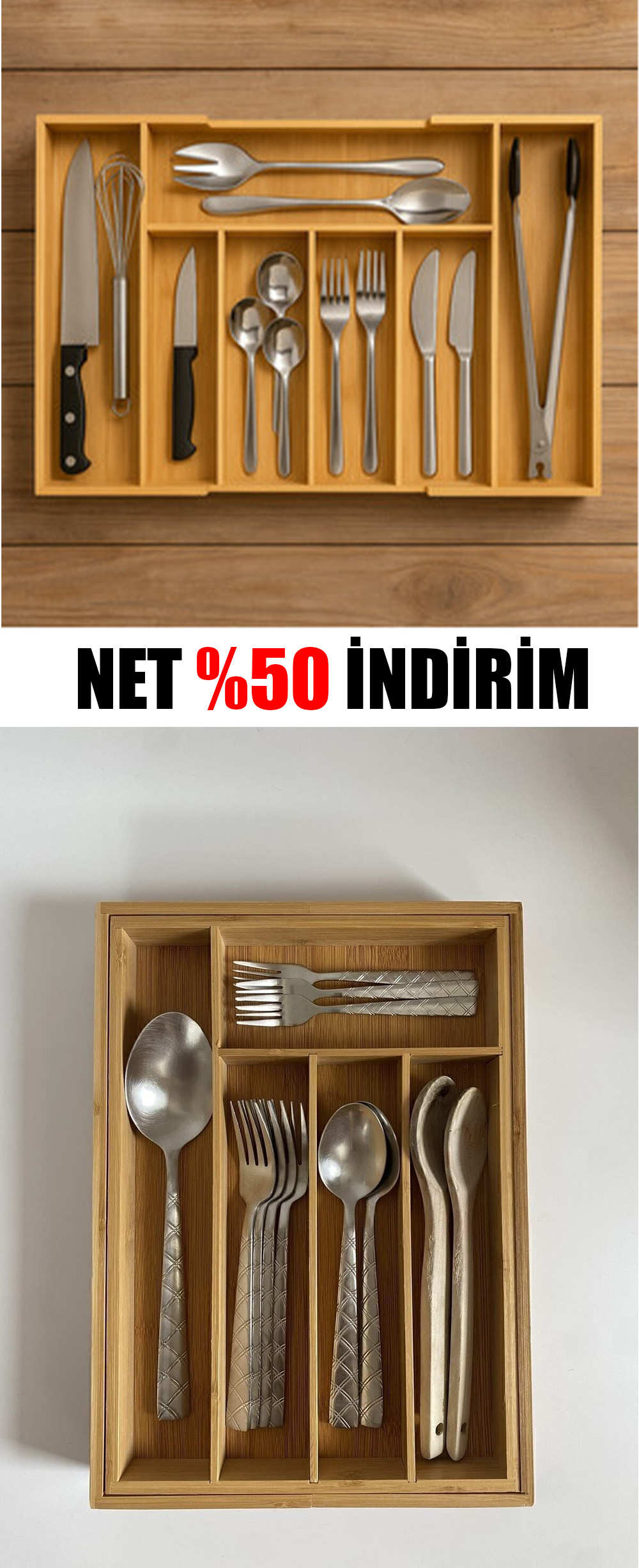 2 Adet BAMBU AYARLANABİLİR KAŞIKLIK -