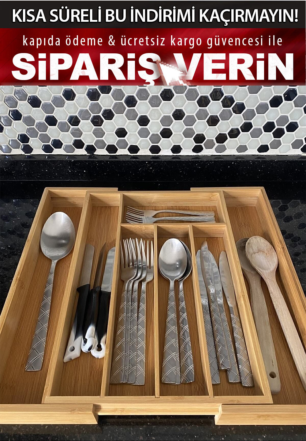 1 Adet BAMBU AYARLANABİLİR KAŞIKLIK -
